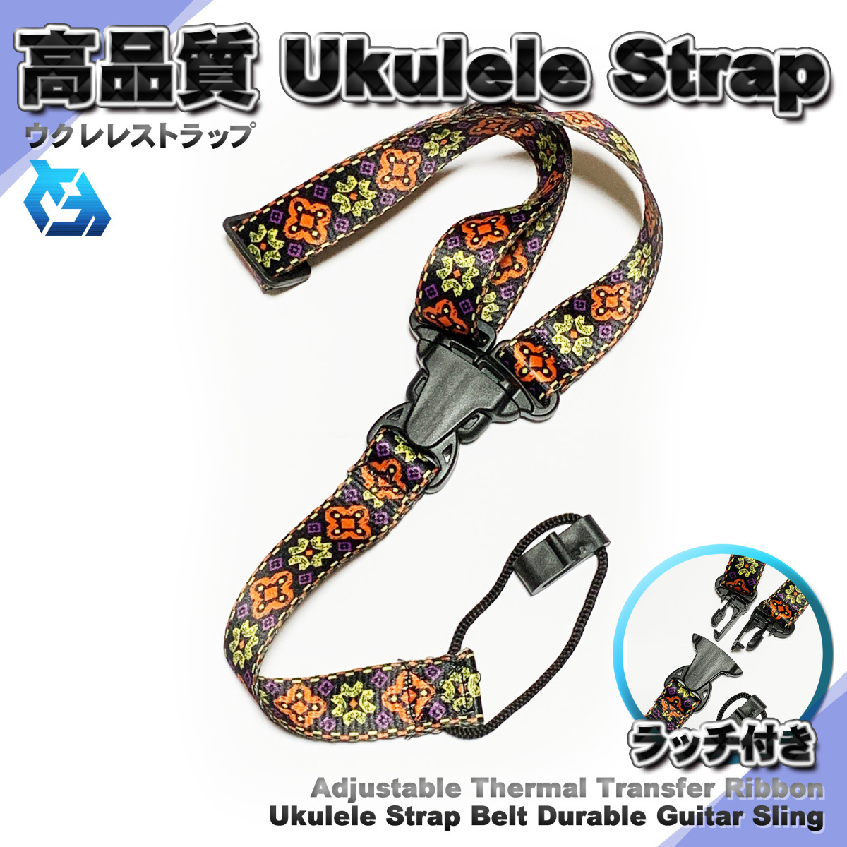 > 【ラッチ付き】 高品質 ウクレレ ストラップ ベルト 熱転写リボン 耐久性の良いウクレレストラップ 【花柄タイプ】