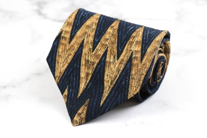 > エルメネジルドゼニア シルク ボーダー柄 幾何学模様 ブランド ネクタイ メンズ ネイビー 良品 Ermenegildo Zegna 世界最高峰ブランド