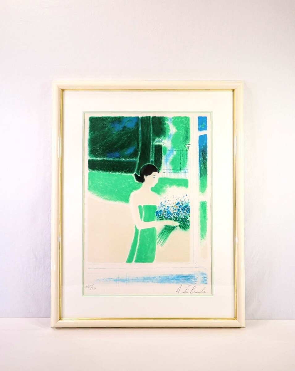 - 真作 アンドレ・ブラジリエ 大判リトグラフ「ハーモニーより春」画45×63cm 仏人作家 サロン・ドートンヌ委員 優しい筆使い鮮やか色彩 8693