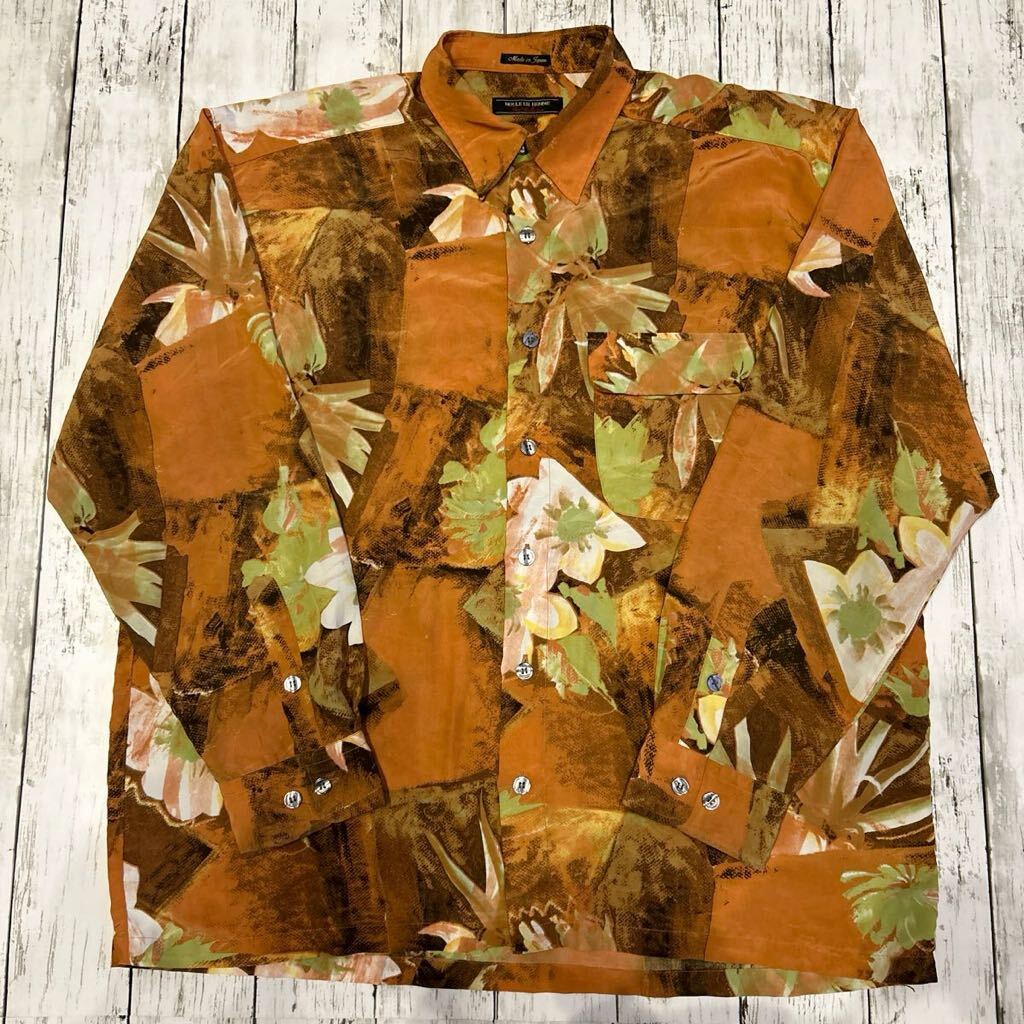 - MOULE UR HOMME 総柄 柄シャツ 植物 レトロ アート ビンテージ 長袖シャツ ポリエステル100%