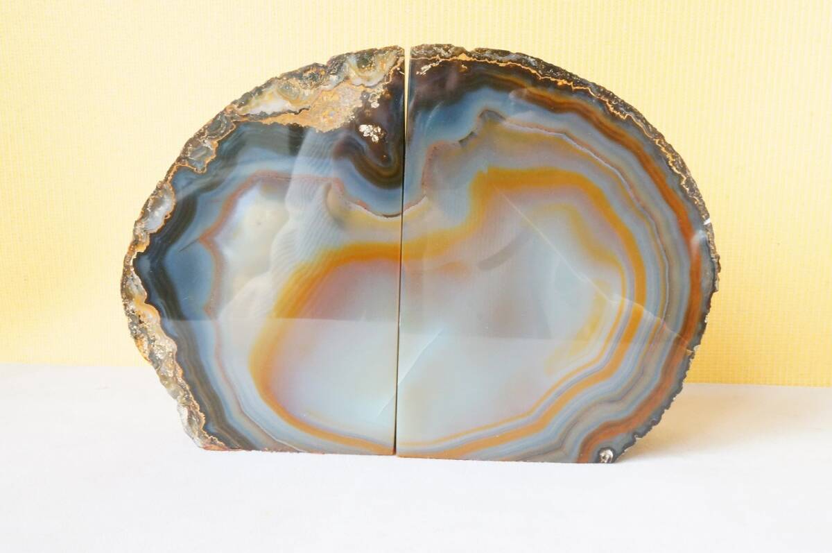 - 希少!35年前の未使用在庫!瑪瑙 断面 天然石 輪切り 鉱物標本 原石 鑑賞石 飾り石 置物 【表面&側面研磨原石】メノウ めのう2.55Kg