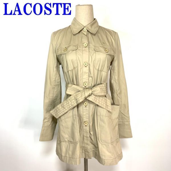 - ラコステ ジャケット コート 綿 ベルト付き ベージュLACOSTE ワンポイント刺繍 コットン 40 C8936