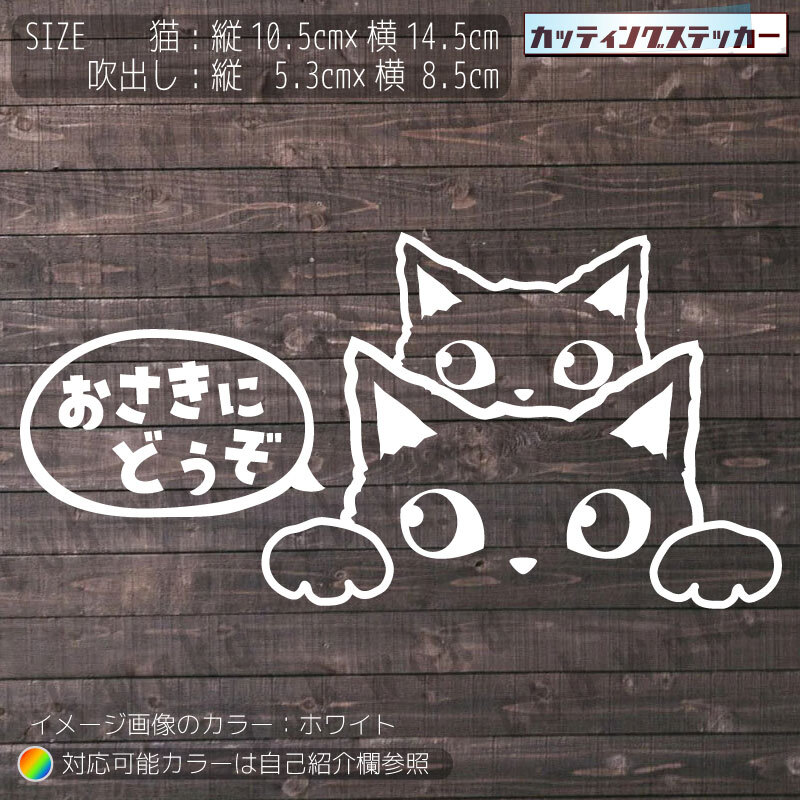 - 覗き猫子猫①おさきにどうぞステッカー 文字絵柄だけ残るカッティングステッカー・交通安全・安全祈願・車・バイク・カブ・リアガラス