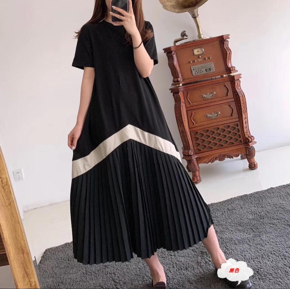 - 人気新品*ロングワンピース レディース プリーツワンピース 半袖 ドッキング 体型カバー ロング丈 ゆったり 着痩せ フレア *黒