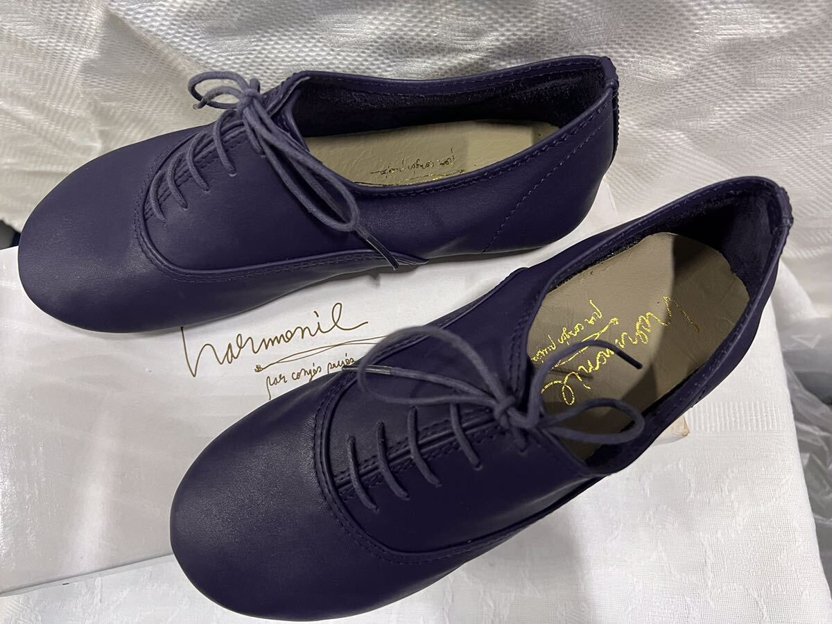 - ◆未使用◆アルモニーパーコンジェペイエ / harmonie par conges payes パープル 革 レザー フラットシューズ Sサイズ 軽量◆B-840