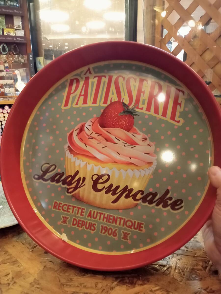 - カップケーキ,ブリキ,トレー,お盆,レトロポップ,お菓子,ストロベリー,サークル,真円,雑貨,インテリア