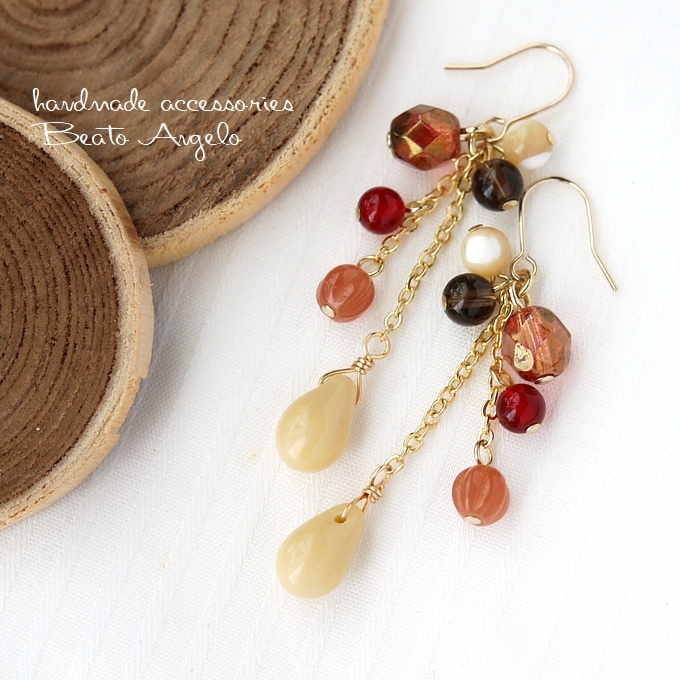 > ◇◆+angelo+チェコドロップと赤メノウのピアス(p-536)ベージュ G 天然石 メロン チタン樹脂イヤリング可