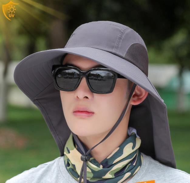- メンズUVカット帽子 アウトドア帽子 サンキャップ 日よけ帽子ガーデニング帽子 登山釣り農作業 ハット通気サイズ調節 HE789
