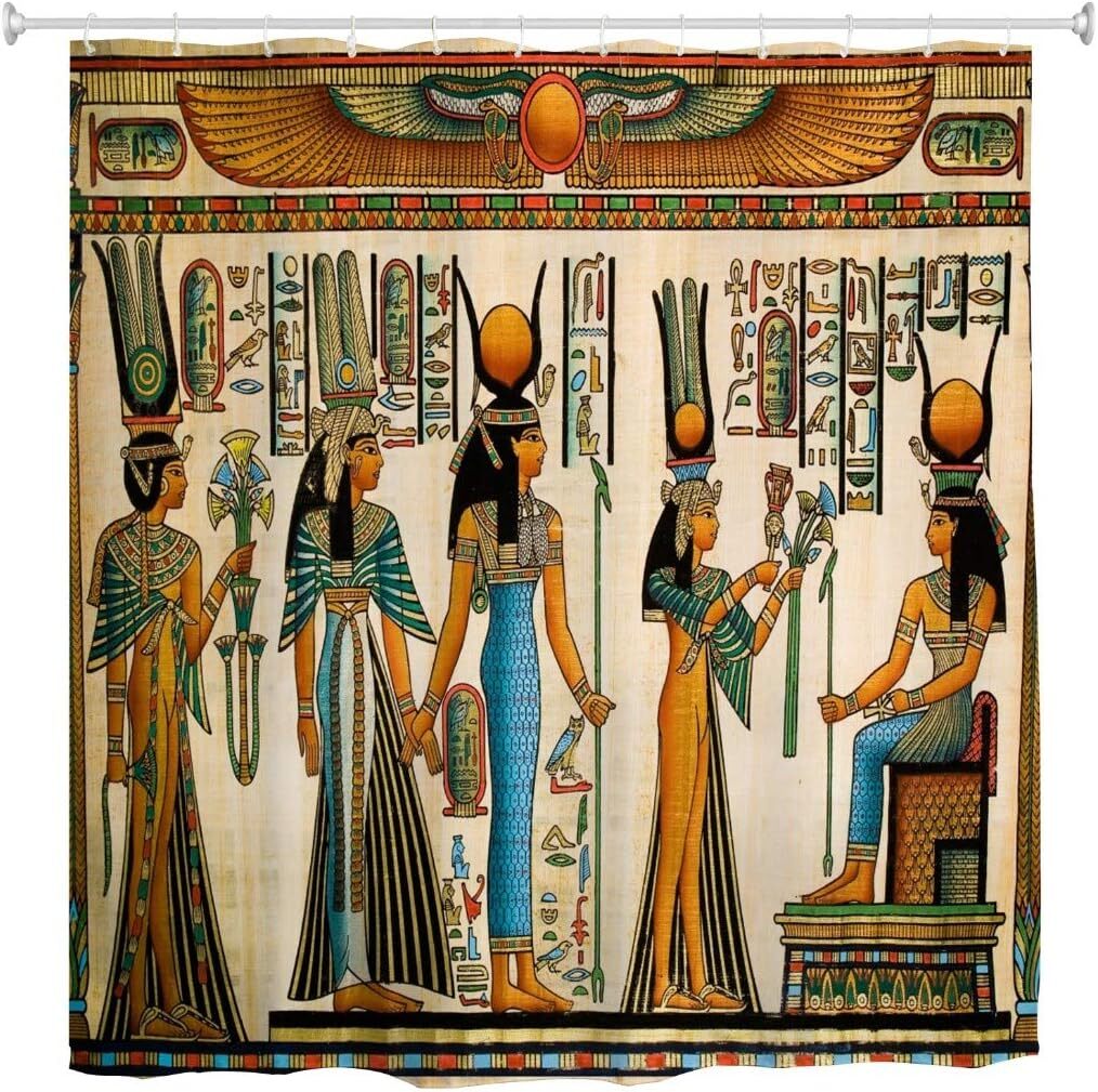 - 古代エジプト女王シャワーカーテンセット ポリエステル生地フック付きバスルームカーテンインテリア装飾輸入品