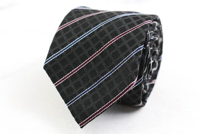 - ミチコロンドンコシノ ブランド ネクタイ ストライプ柄 チェック柄 シルク メンズ ブラック MICHIKO LONDON KOSHINO