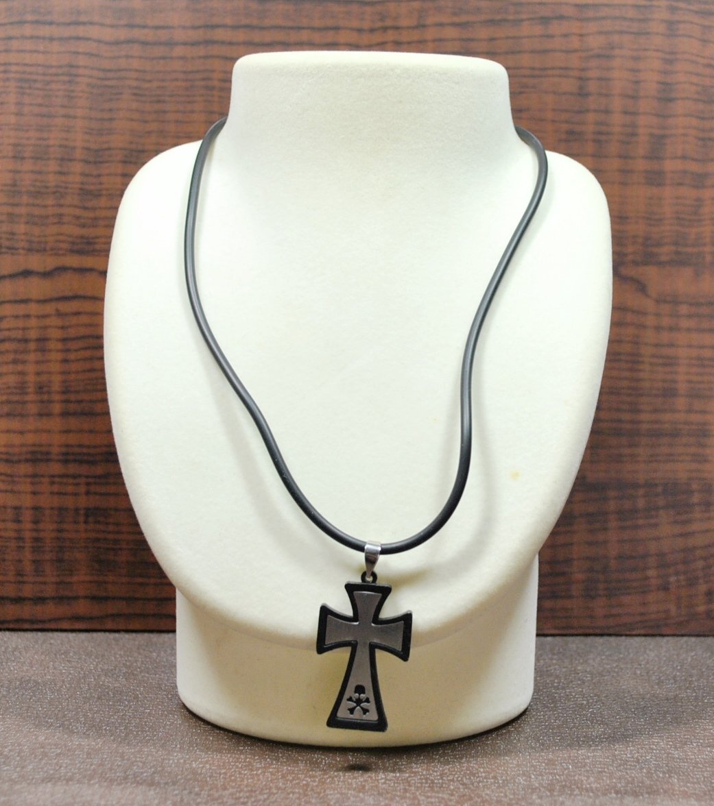 - ■ 送料無料 新品★ シンプルな 進化系 ネオブラック ゲルマニウム スポーツ ネックレス (十字ドクロ)