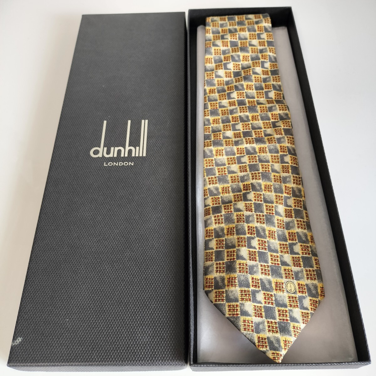 - ダンヒル(Dunhill)グレー赤黄色線Dロゴネクタイ