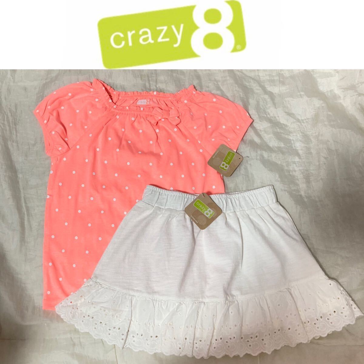 - 新品タグ付き☆Crazy8 パフスリーブTシャツ&スカート 上下セット 110 クレイジー8 ジンボリー アメリカインポート