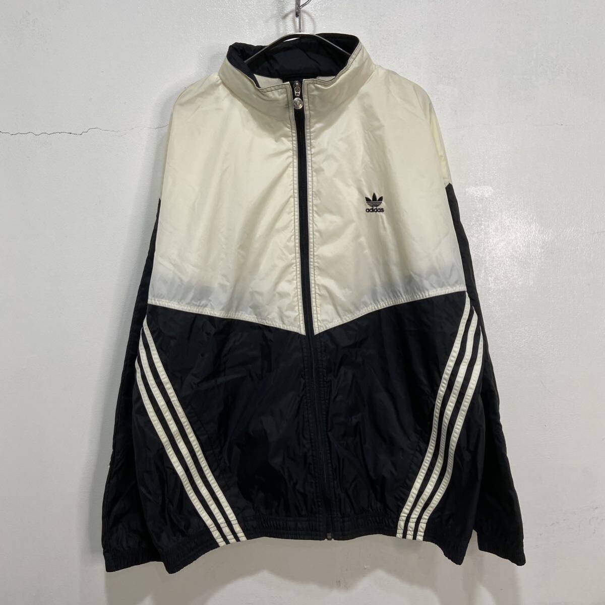 - 送料無料☆90s☆adidas☆ナイロンジャケット☆トレフォイルロゴ☆3本線☆白黒☆L☆