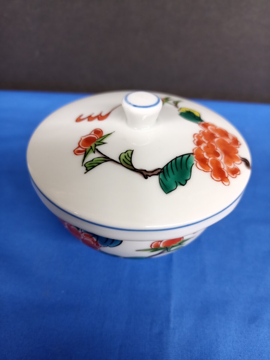 - 昭和レトロ■九谷焼 秀幸作 牡丹 蓋付き湯のみ