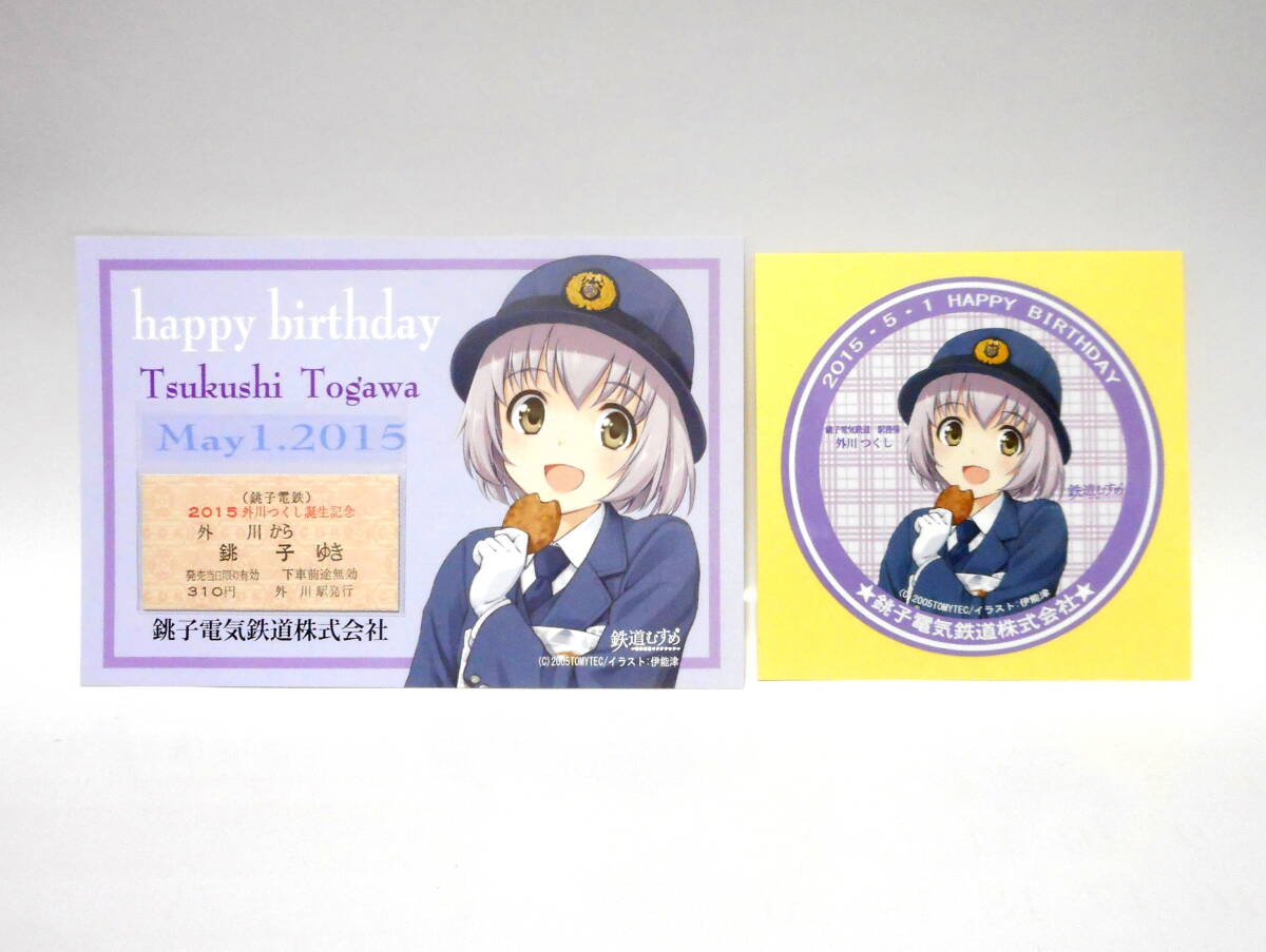- 鉄道むすめ 銚子電鉄 2015 外川つくし 誕生記念グッズ セット 記念乗車券 切符 きっぷ ステッカー シール
