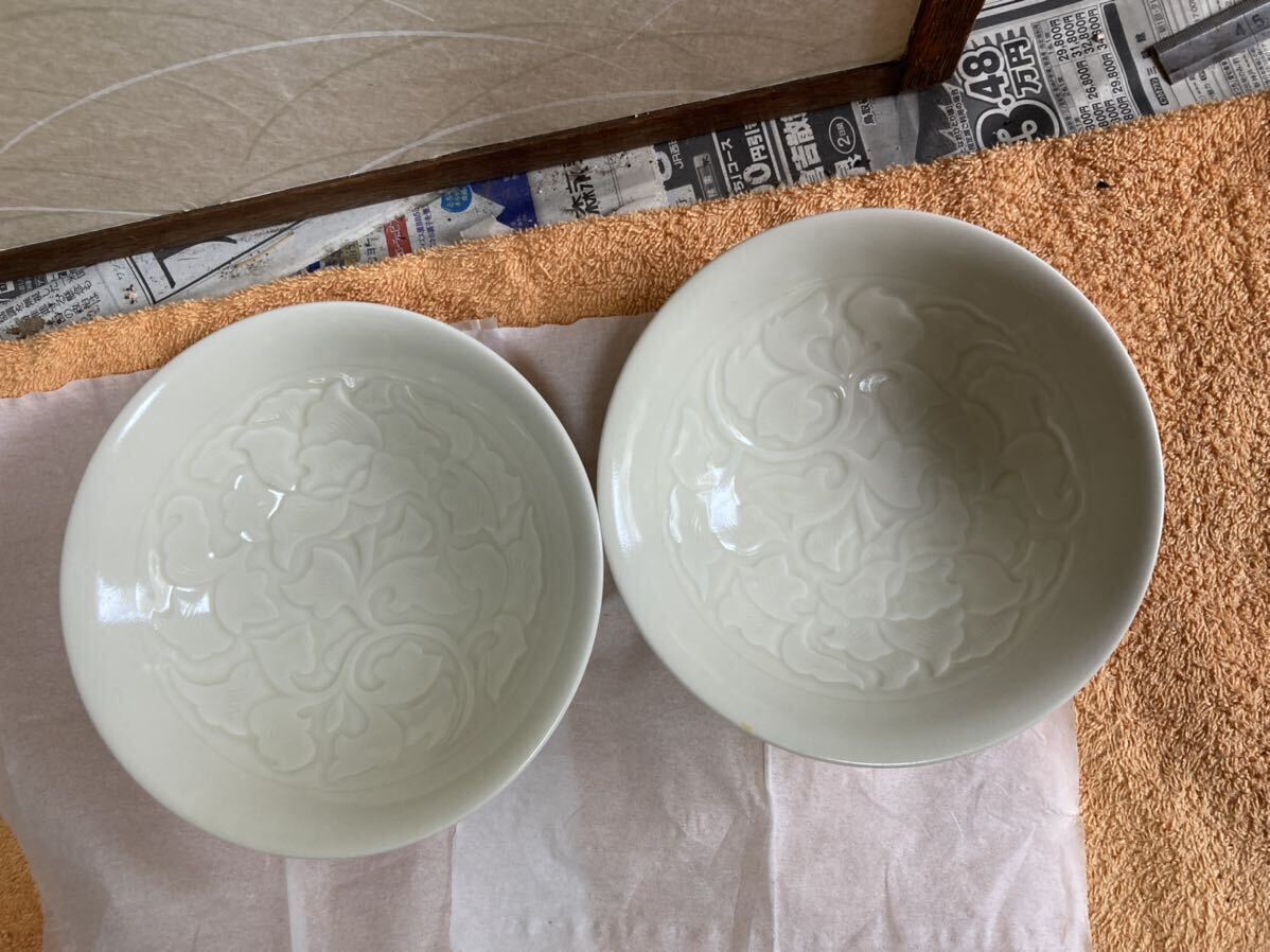 - アンティーク?骨董品?陶器製?中皿 ?白色?2点セット?汚れありです。