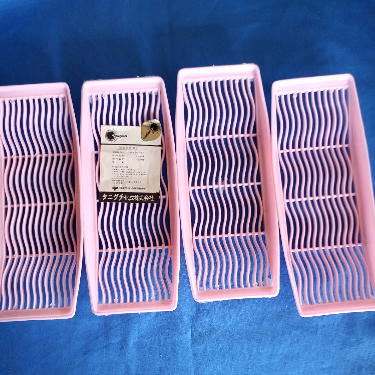 - 昭和レトロ■タニグチ おしぼり置き ピンク 4枚 おしぼりトレー