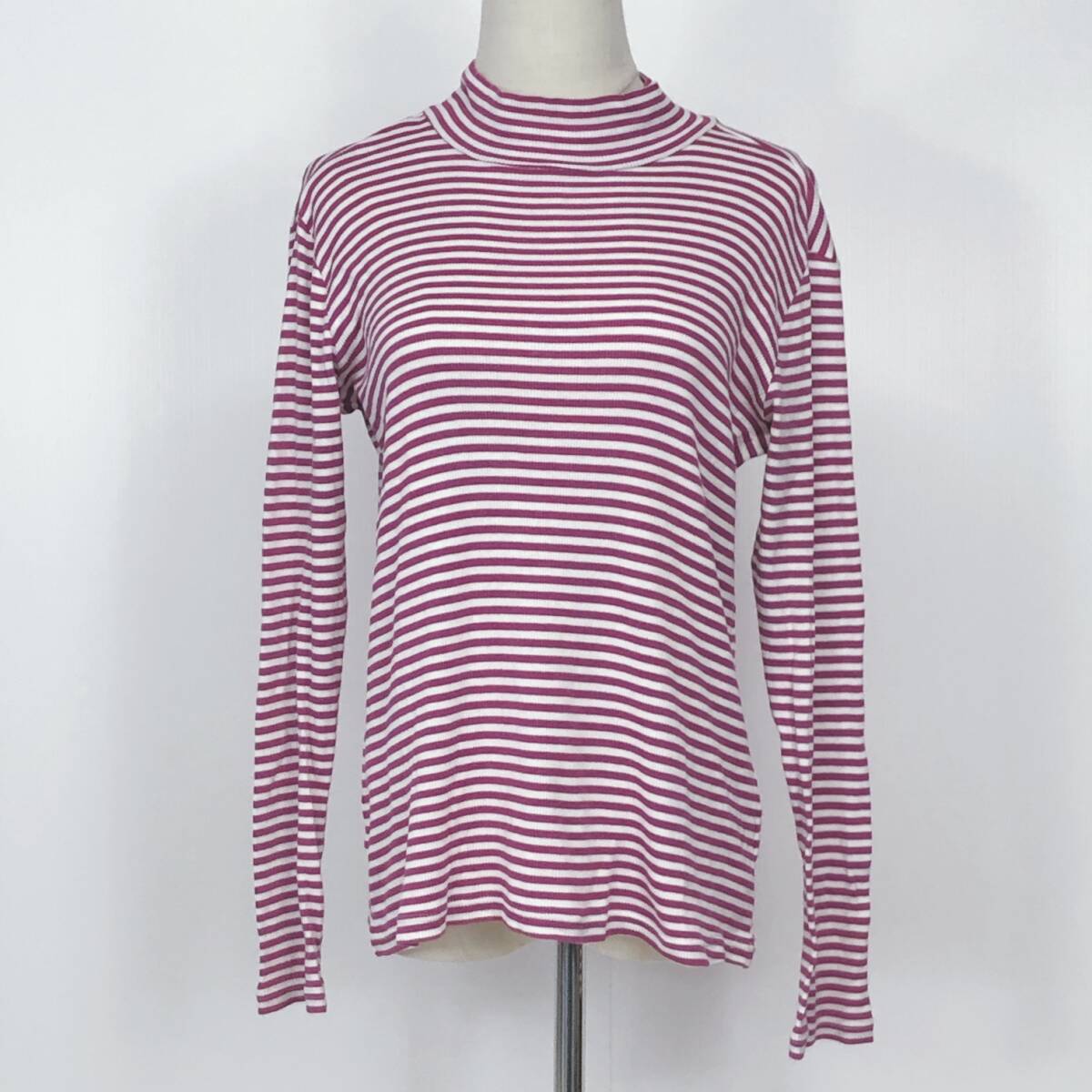 > Y1052 SIMPLE LIFE レディース トップス セーター 長袖 薄手 ハイネック Lサイズ ボーダー 綿100% シンプル カジュアル あたたか 春秋