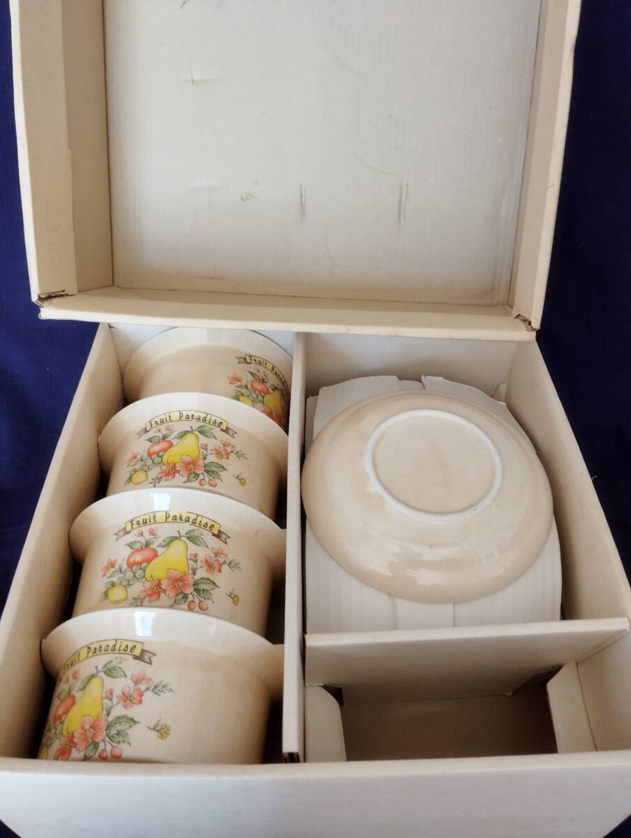 - 万宝窯 フルーツ パラダイス 茶碗蒸し容器(受皿付) 4却セット