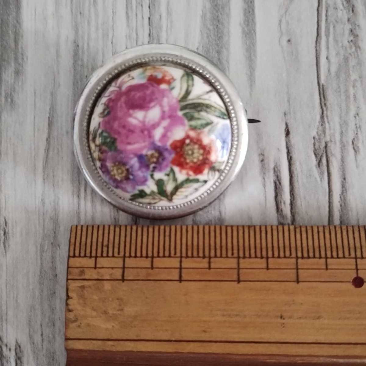 - 昭和レトロ ヴィンテージ 陶器 花柄 アンティークブローチ