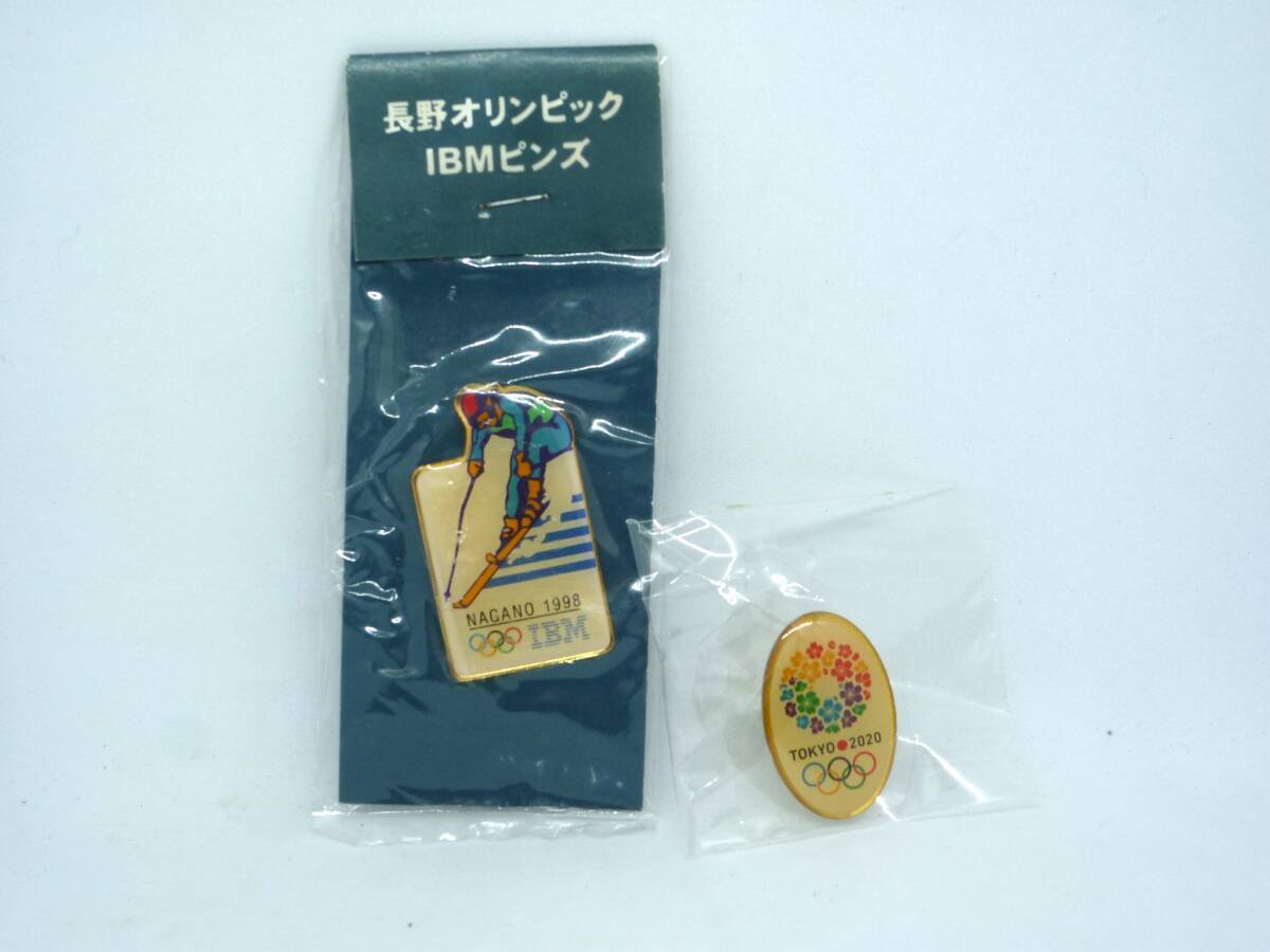 > Aレア品★未使用★1998年長野オリンピック IBMピンズ スキーと東京2020 オリンピック招致ピンバッチ 楕型
