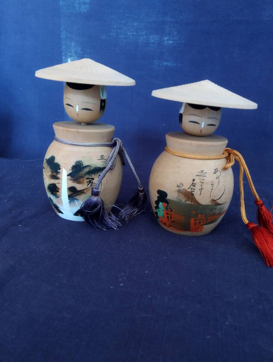 - 伝統こけし 日光 郷土玩具 インテリア 置物 2体 民芸品 土産 昭和レトロ