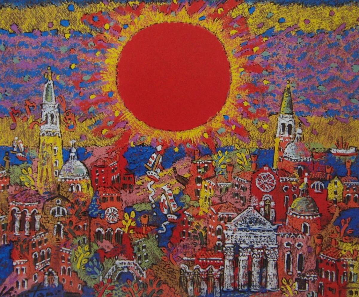 - 絹谷幸二「ヴェネツィア朝陽」 希少画集・額装画、日本製新品額縁、状態良好、送料無料