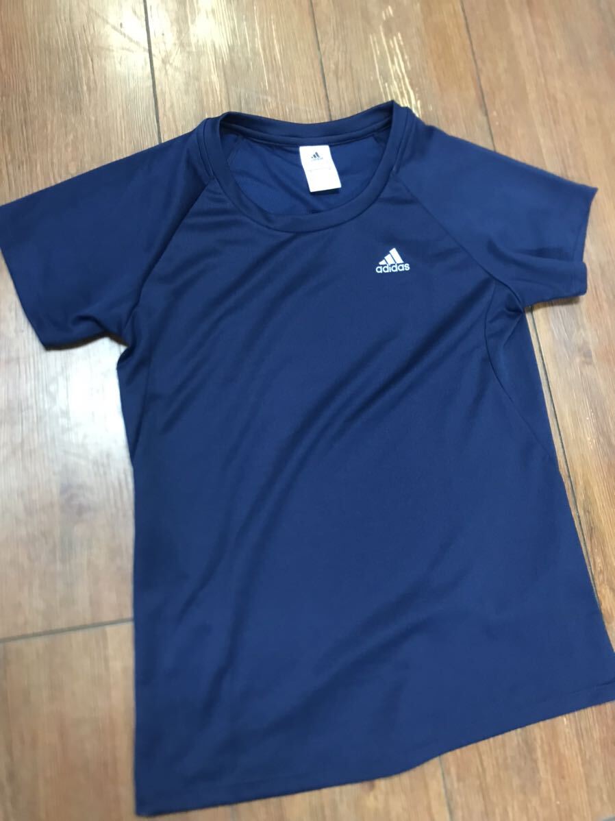 - アディダス 半袖 Tシャツ レディース M ネイビー ワンポイント刺繍 climalite h1