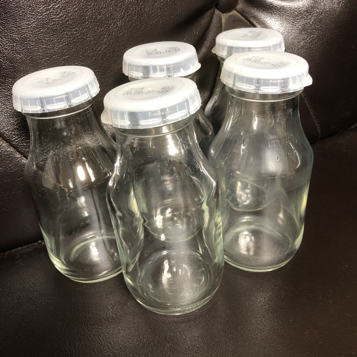 - 牛乳ビン 空き瓶 5本★リメイク、DIY、小物入れ、花瓶、工作、ハンドメイド、ハーバリウム、プリンカップ、手作り、明治 meiji