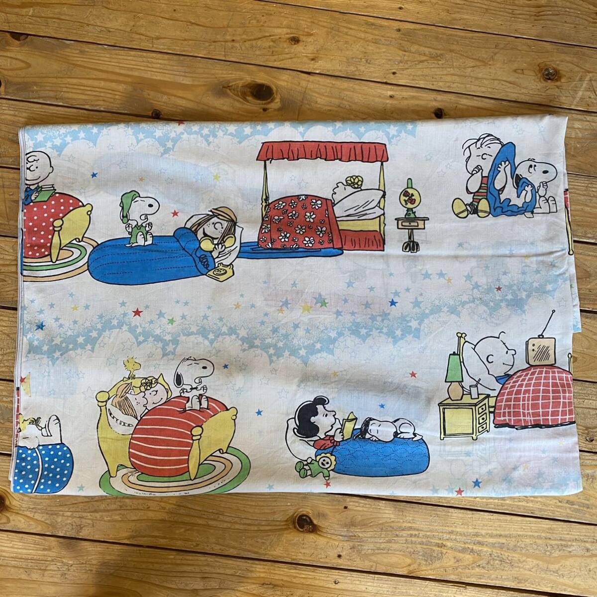 - USAヴィンテージ ベッドシーツ スヌーピー リメイク生地 レア チャーリー ルーシー パティ 素材 フラットシーツ アメリカ仕入 総柄 B1941