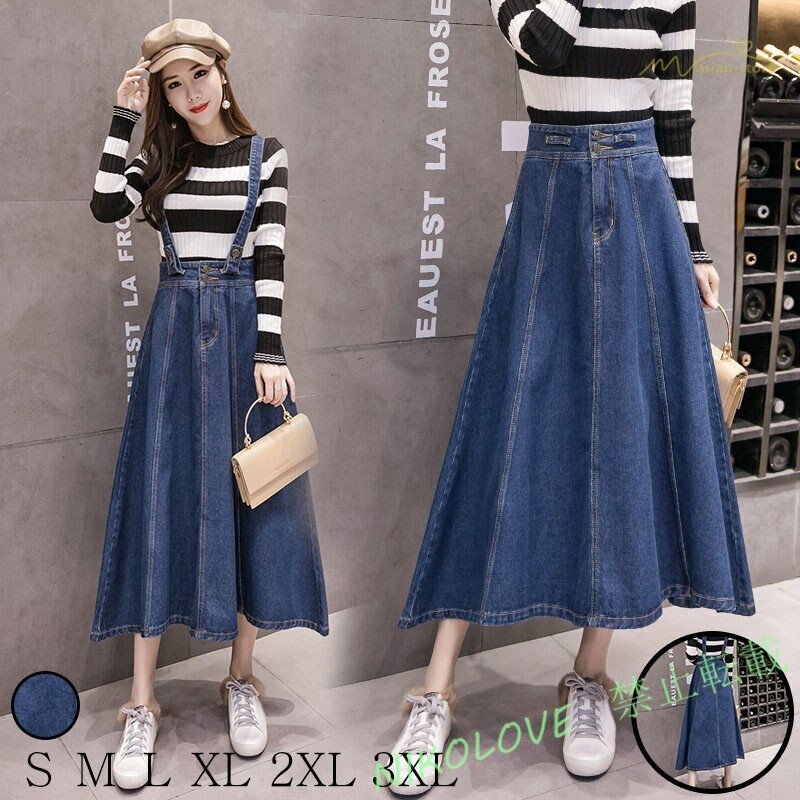 - LB667 デニムスカート レディース Aライン オールシーズン ハイウエスト ハーフスカート デニムスカート ロング丈 フレア 美ライン