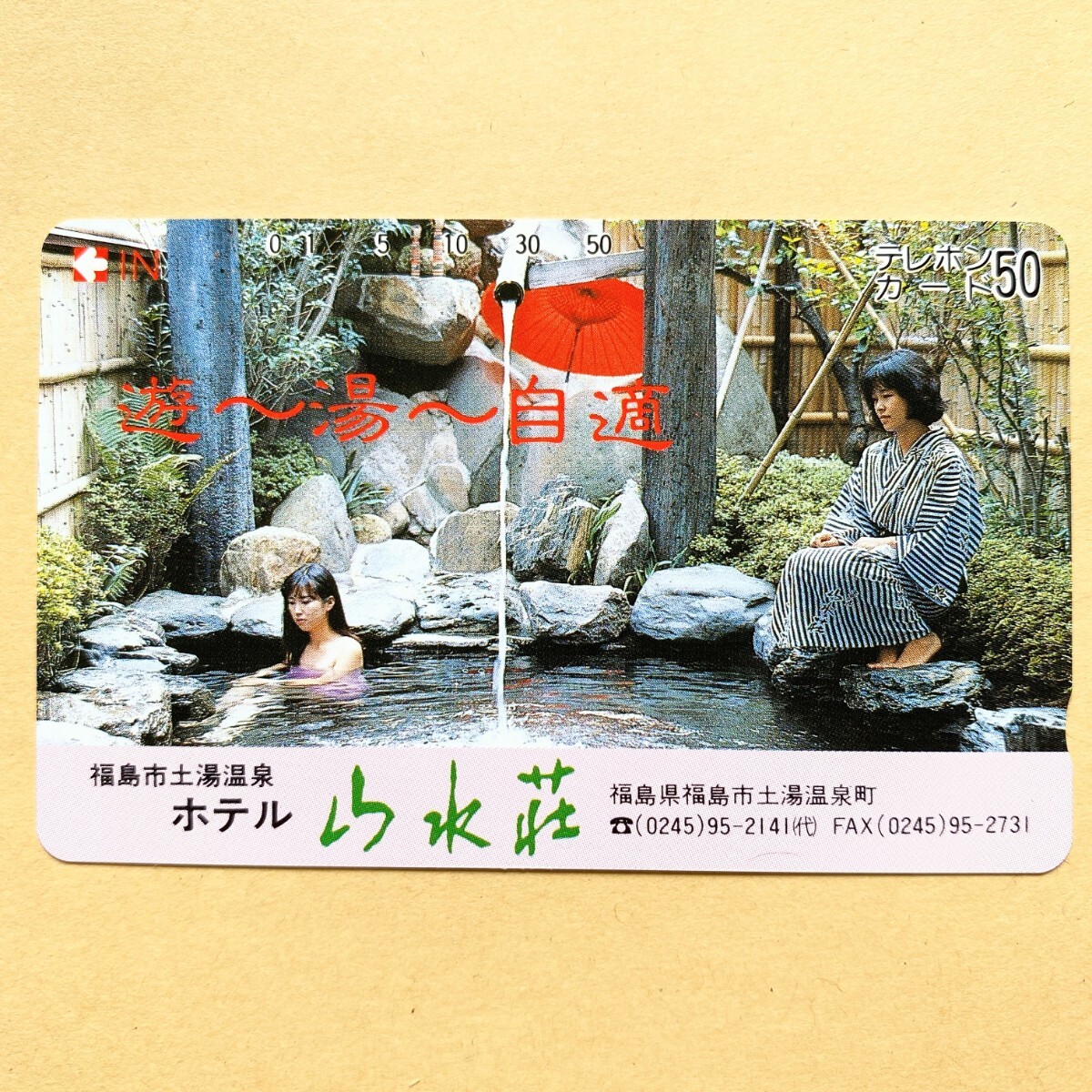 - 【未使用】温泉テレカ 50度 福島市土湯温泉 山水荘