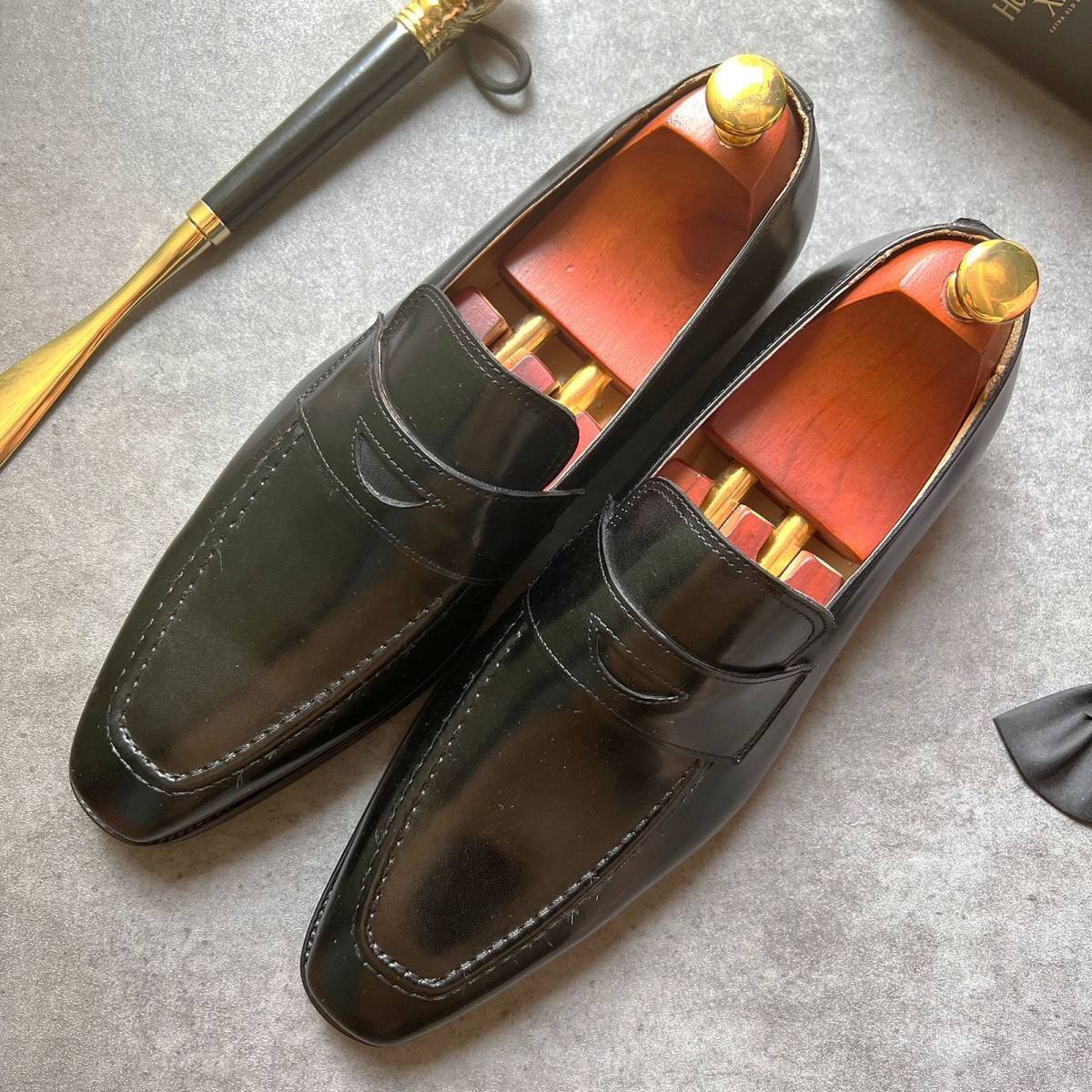 - メンズ スリッポン 牛革 ビジネスシューズ 本革 レザーシューズ 職人手塗り上げ ローファー 紳士靴 結婚式 革靴 28.0cm以上 LD020