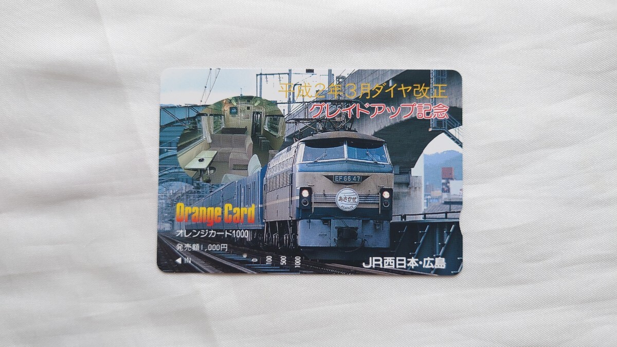 - △JR西日本広島△平成2年3月ダイヤ改正 グレイドアップ記念 特急あさかぜ△記念オレンジカード1穴使用済