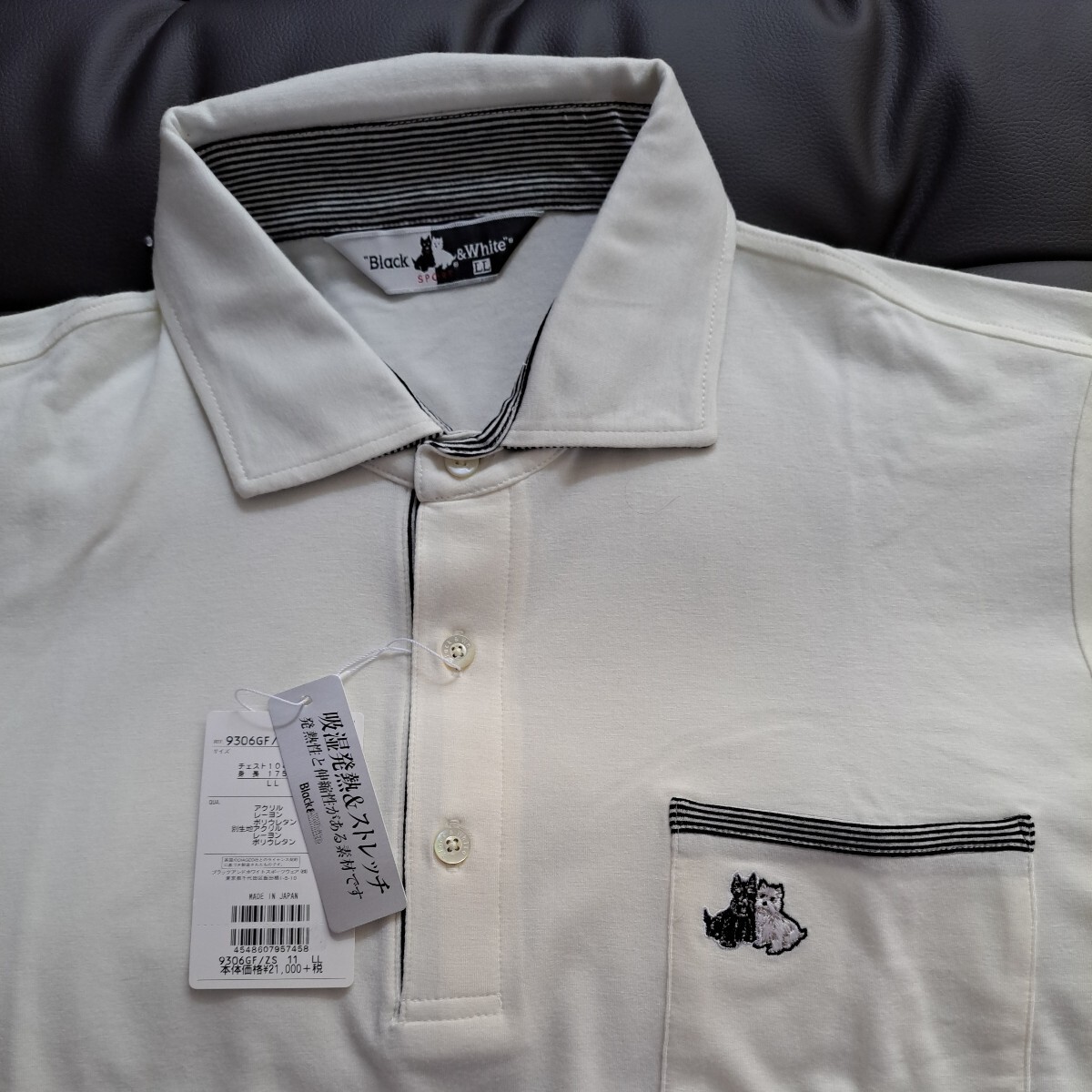- メンズ/LL サイズ長袖ポロシャツ秋冬物/Black White /¥23100(21000+税)/11オフ/吸湿発熱/ストレッチ/日本製/送料無料/宅急便コンパクト