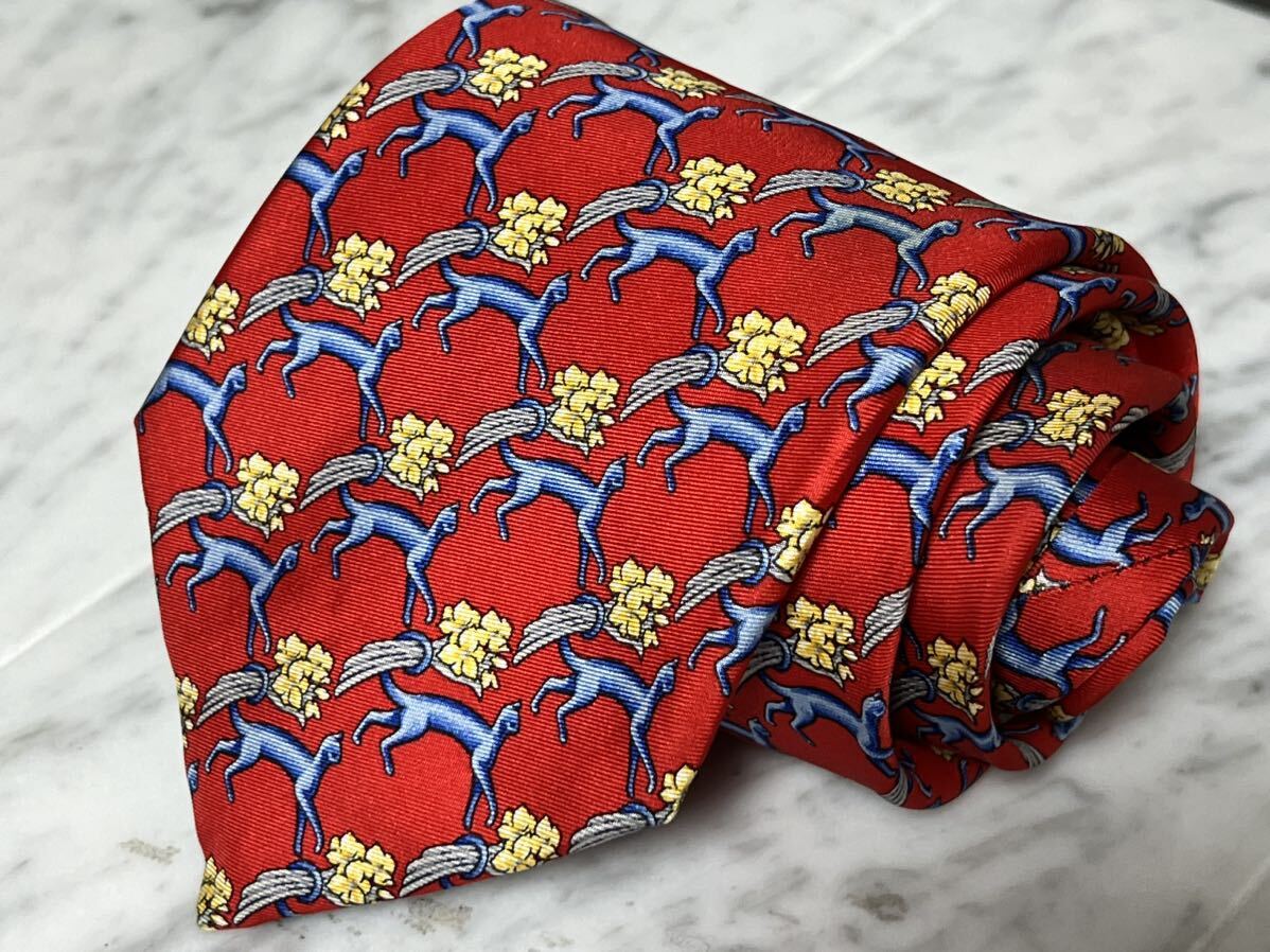 - 770円~ LANVIN ネクタイ レッド 動物 花柄 (R2)