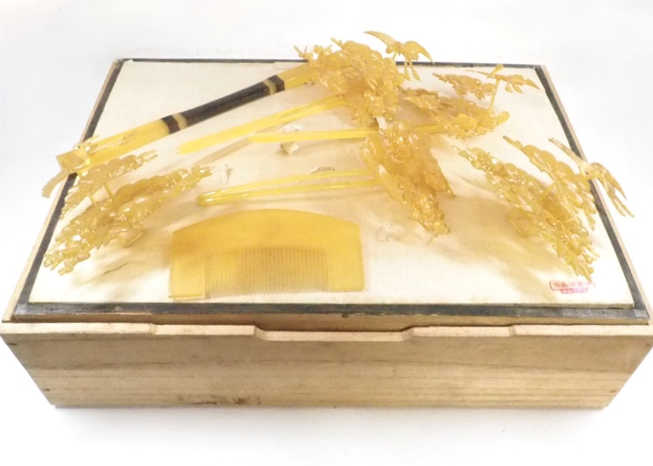 - 優しい風合いが魅力の逸品!昭和期ビンテージ くし 簪 髪飾り7点セット 木箱付 SMN604