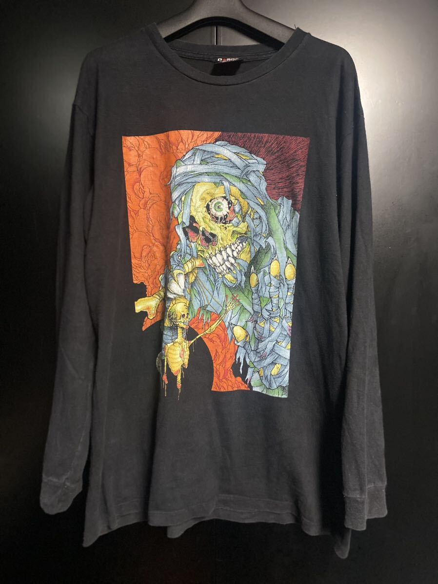 > 激レア PUSHEAD ロンTシャツ ヴィンテージ サイズL ブラックgiantタグ Septic Death パスヘッドTシャツ Metalica USA製
