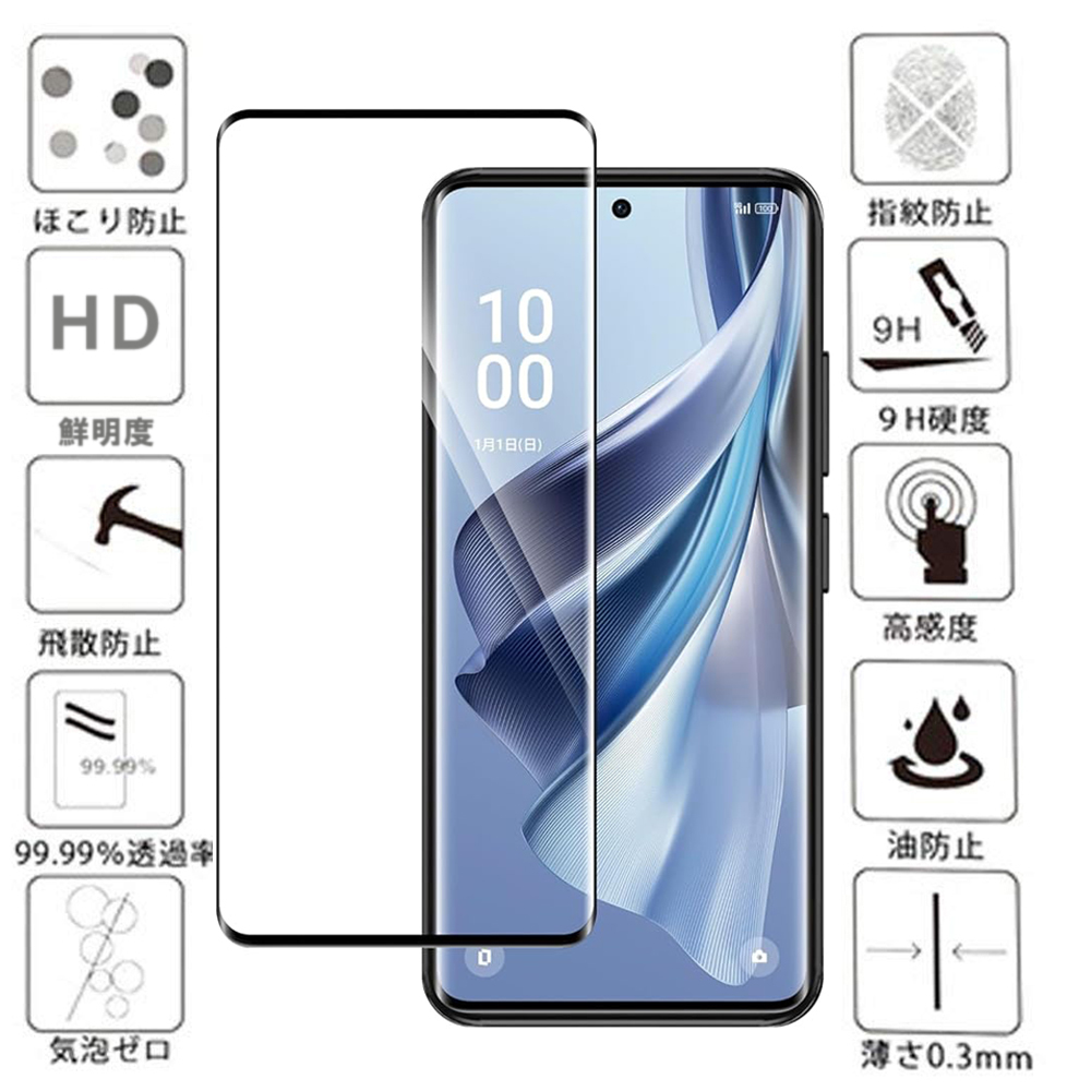 - 黒 OPPO Reno 10 Pro 5Gガラス フィルム オッポ 3D 曲面 液晶 表面 画面 保護 頑丈 スクリーン カバー シール シート 9H Glass Film
