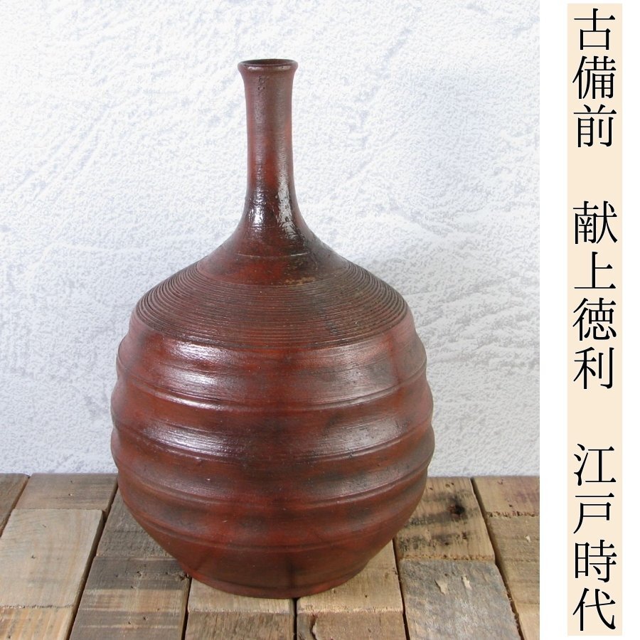 - 古備前 献上鶴首徳利 花入 高さ:20cm 桐箱入 江戸時代/花生一輪挿し/24d067