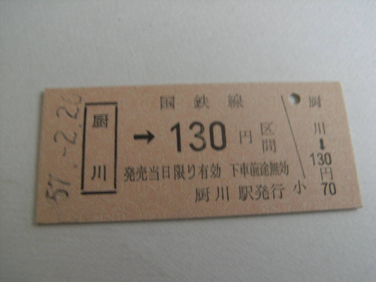 - 東北本線 厨川→国鉄線130円区間 昭和57年2月26日 厨川駅発行