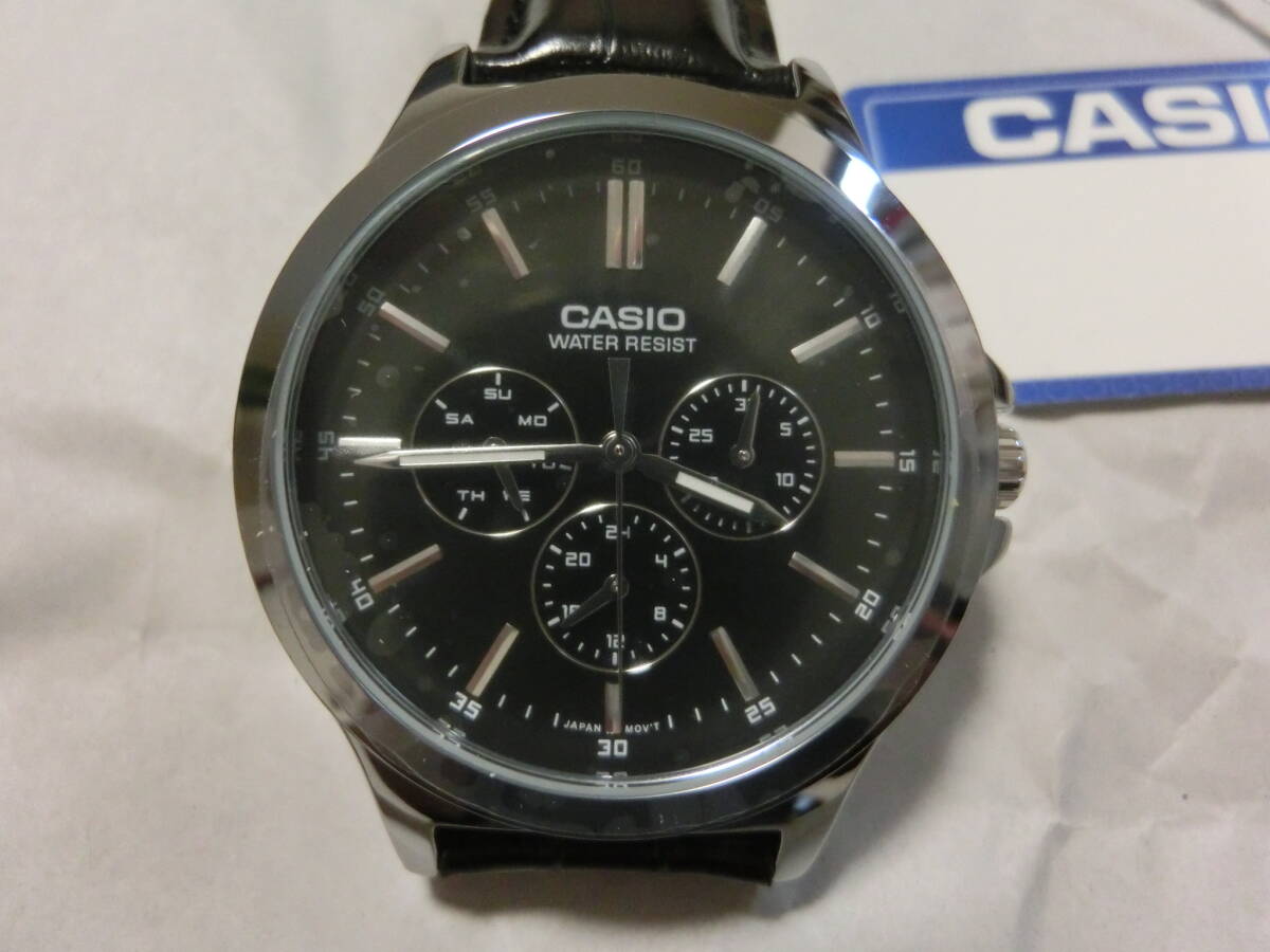 > CASIO カシオ 新品未使用腕時計 新作 メンズ ブラック シンプル腕時計 30m生活防水 マルチファンクション腕時計 黒革式ベルト