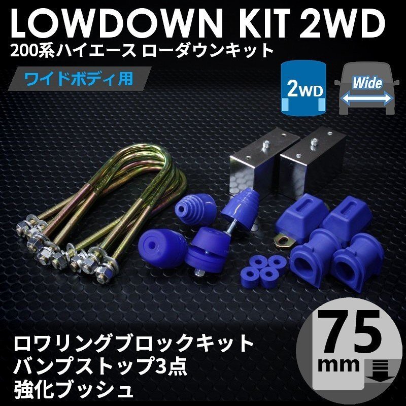 > ■特価 ハイエース 200系 [ワイド 2WD] ローダウンキット 8 [ブロック75mm (3インチ) + バンプ3点 + 強化ブッシュ] 1型2型3型4型5型6型7型