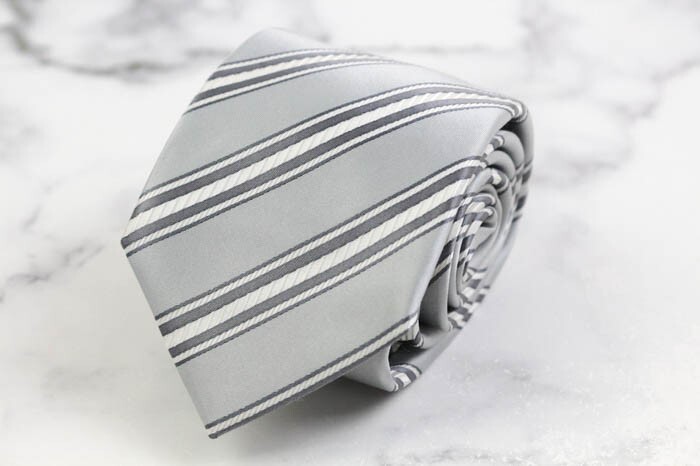 - ヒルトン シルク ストライプ柄 日本製 ブランド ネクタイ メンズ ライトグレー HILTON