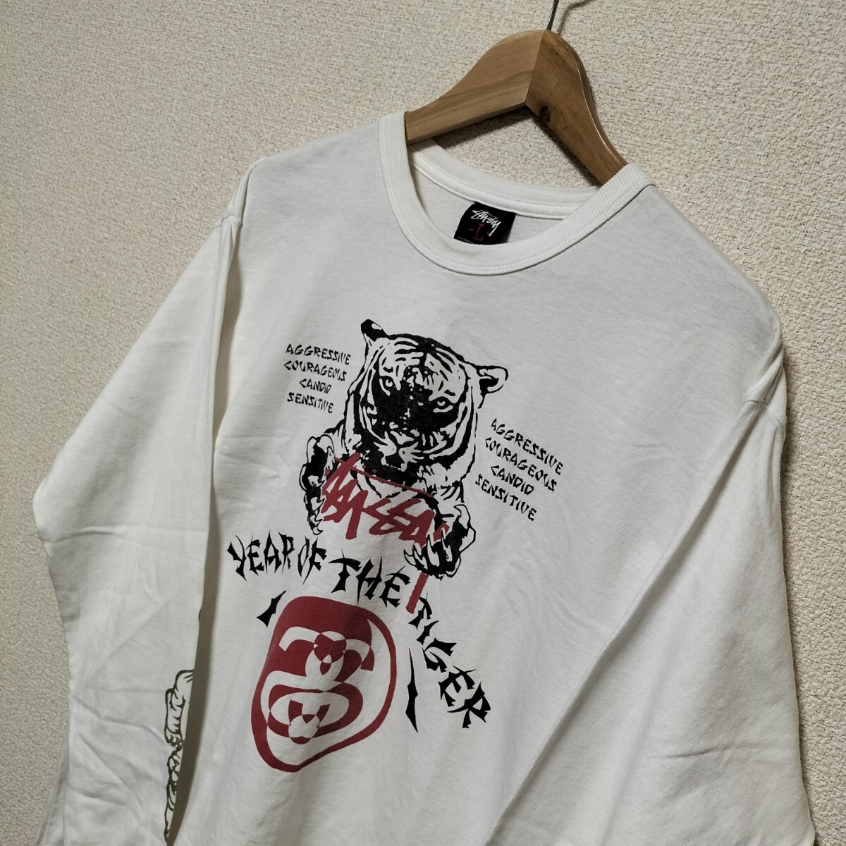 > 希少☆2010年寅年限定 OLD STUSSY ロンT 虎 干支 シャネルロゴ ストックロゴ 長袖 Tシャツ 白 サイズL オールド ステューシー 古着 USED