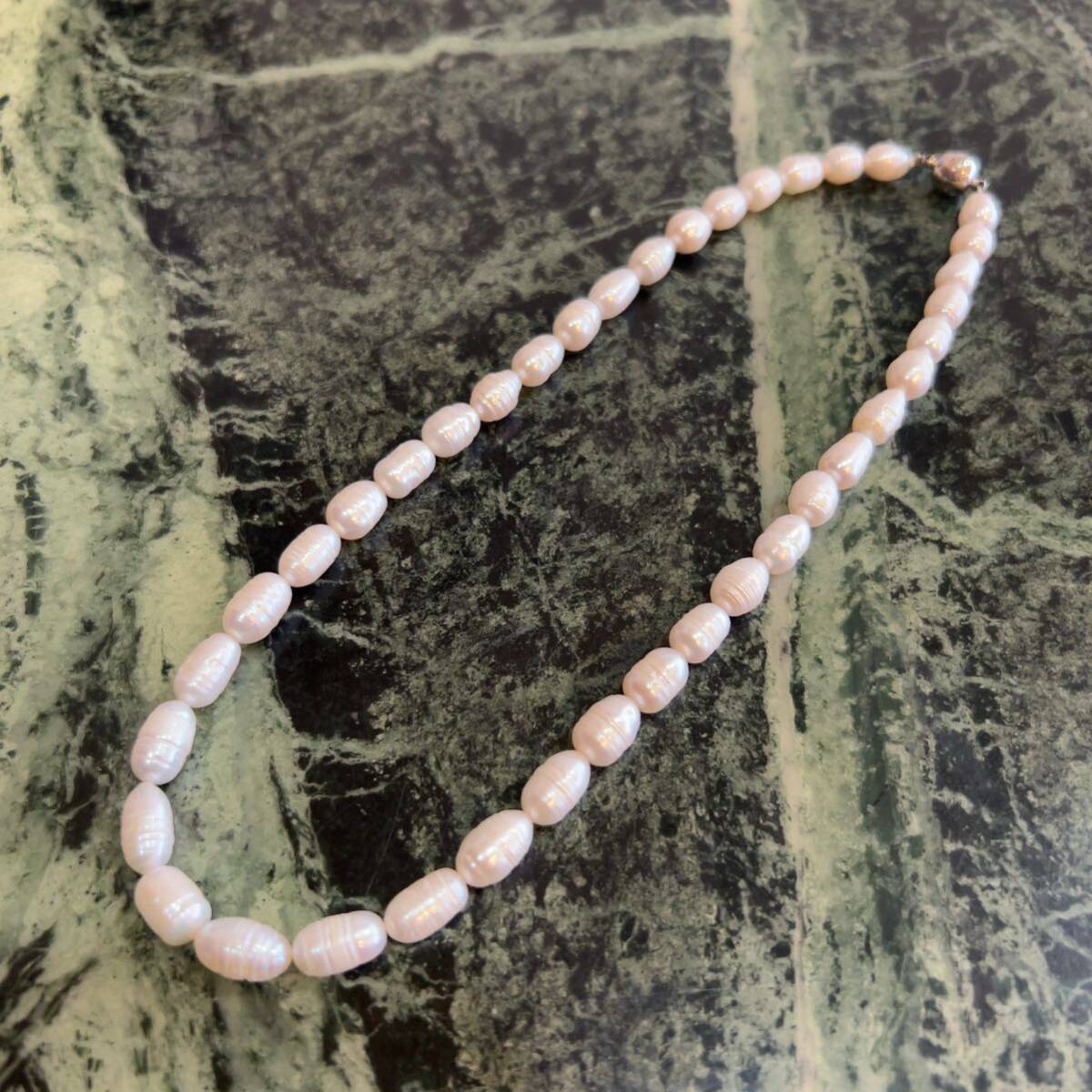 > 【新品】淡水パールネックレス★マグネット式 白 シンプルデザインネックレス 淡水真珠 パーティー 簡単着脱 アクセサリー
