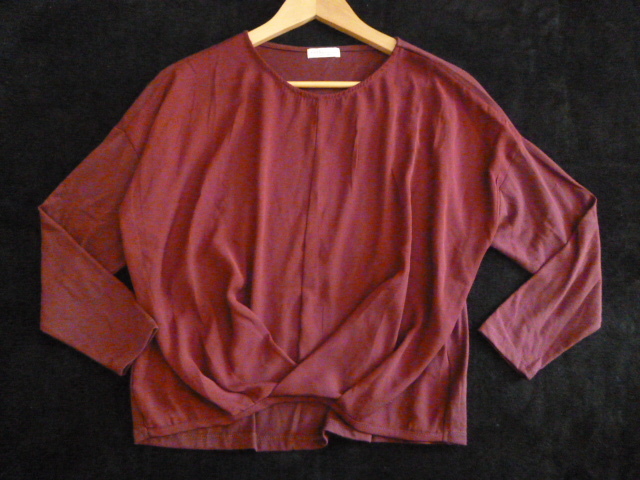 - earthmusic&ecologyアースミュージック&エコロジー◇ワイン色前後異素材ドルマントップスF◇ウエスト絞りデザイン長袖◇a71