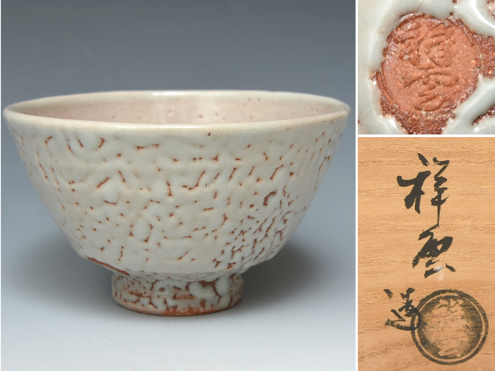 - 古唐津写茶碗 銘「鉢之木」 大徳寺龍源院住職 細合喝堂箱書 遠藤祥雲(造)梅花皮 陶磁器 茶道具 z7280o