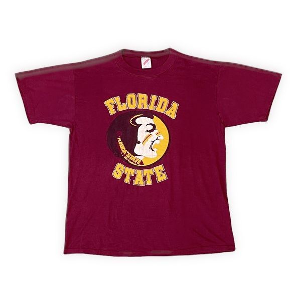 > 80's 90's 米国製 ジャージーズ JERZEES Tシャツ フロリダ州立大学 FLORIDA STATE 3段 バーガンディ L [ta-1075]